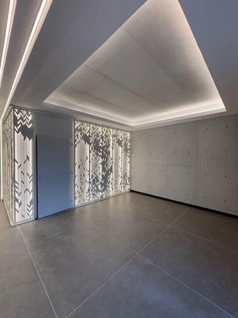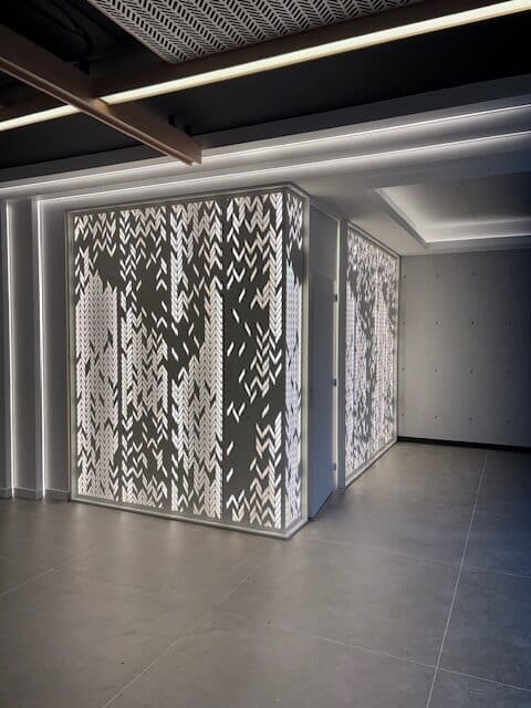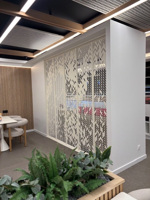 Le brief initial du client ne manquait pas de clarté : créer des claustras pour séparer et habiller un espace commercial tout en apportant de la lumière. Et surtout, une signature visuelle reconnaissable. Concrètement, il s’agissait de panneaux métalliques ajourés intégrant un éclairage LED discret, devant s’insérer dans un environnement commercial aux contraintes dimensionnelles et esthétiques strictes.