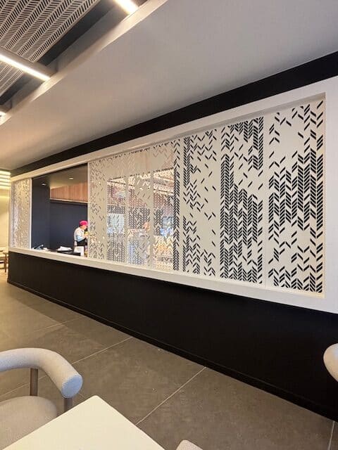 Le résultat ? Une cloison qui structure l’espace, diffuse une lumière douce et met en valeur l’identité du lieu… sans compromis sur la solidité ni sur la maintenance (important en milieu commercial).